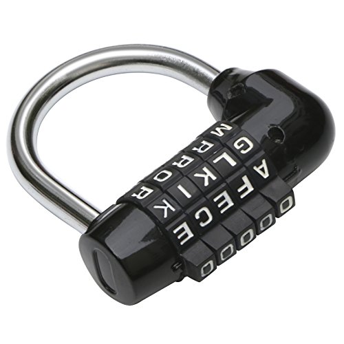 WANLIAN 5-urtavla kombinationshänglås, svart 5 bokstäver lås kodlås stort gym skåp skåp rum rekvisita hänglås Wordlock PL-004-BK 5-urtavla kombinationshänglås, svart