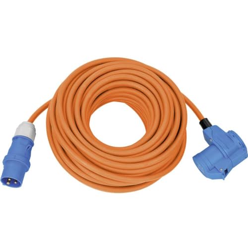 Brennenstuhl Camping CEE-förlängningskabel med CEE-kontakt och vinkelkoppling inkl. skyddskontakt kombiuttag (25 m kabel i orange, 230 V/16 A, användning utomhus, tillverkad i Tyskland)