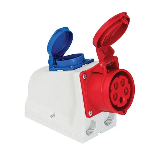 Kombiuttag CEE 416-6 3P+N+J 6H, Schuko 1+N+J, IP44 400V 16A