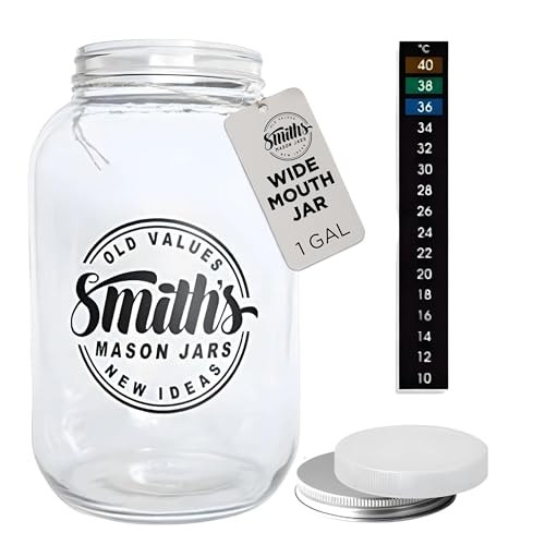 Smiths Mason burkar 3,7 liter bred munburk med 2 x skruvlock | glasförvaringsburk för betning, konservering av mat och kakförvaring, kombucha, sol te och gin