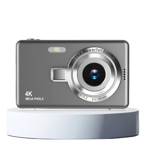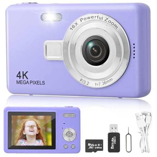 Digitalkamera, 4K autofokus kompakt kamera med 32 G SD-kort och dubbelkamera, HD 48 MP med 2 tums stor skärm, 16 x digital zoom barn digitalkamera med 2 batterier, vloggkamera för nybörjare