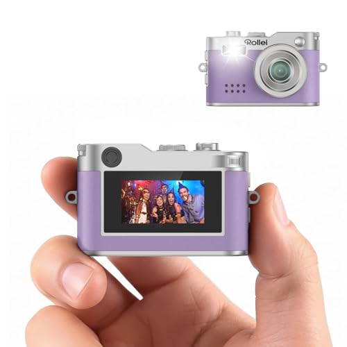 Rollei Digital minikamera vintage lila, 1080P FHD liten retro digitalkamera med 0,96 tums färgskärm 2 MP tumkamera kompakt fotokamera med blixt och inspelning, mini digital kamera liten