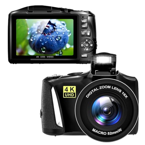 CAMKORY digitalkamera 4K 48MP fotokamera med 32G-kort autofokus optisk sökare 16 x zoomfotoapparat kamera digital kompakt kamera med batteri blixt digitalkamera kompakt för nybörjare tonåringar