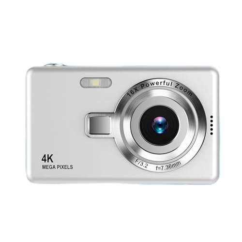Digitalkamera med 2,4-tums TFT-skärm, 12 MP 1080P-kamera, Digital Point and Shoot-kamera med 16X Zoom Anti Shake, Kompakt Vloggningskamera för Pojkar, Flickor Student (Silver)