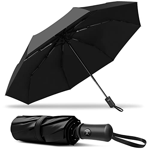 XIXVON Paraply SE (8 Ribbor, Svart) | UPF 50+ 99% UV-Skydd, LäTt, Automatisk, VindtäT, BäRbar på Resan | Kompakt Vikbart Paraply