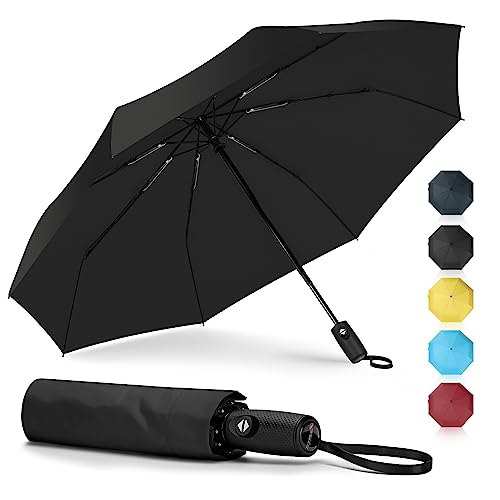 Hannstar Fällbart reseparaply, förstärkt vindtätt paraply, kompakt, automatiskt, lätt, starkt och bärbart paraply för regn – män och kvinnor, Svart, 110 centimeters