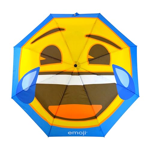 Emoji Unisex vuxen skrikande skrattar ansikte automatisk öppning och stängning kompakt hopfällbart paraply – blå, N/A