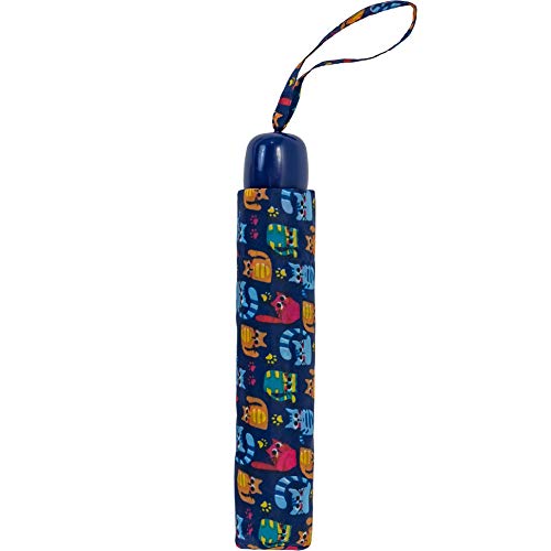 Kvinnors vikbart paraply - 24 cm kompakt paraply - blått med katttryck