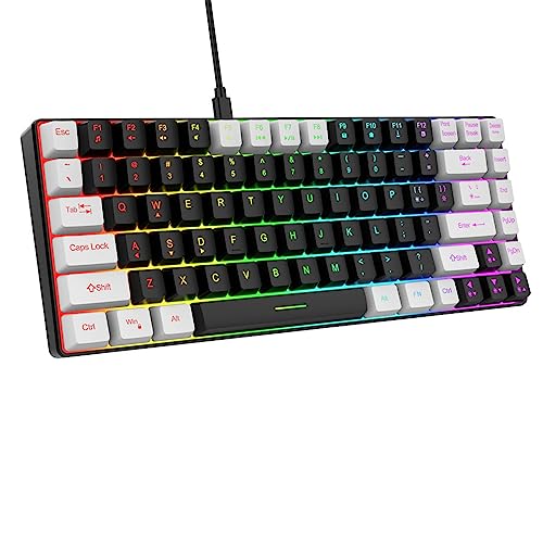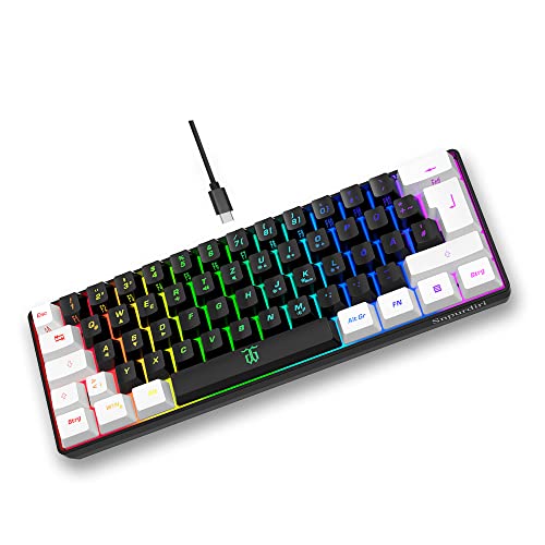 Snpurdiri 60 % gamingtangentbord, ergonomiskt litet mini gamingtangentbord, tyst kompakt RGB-tangentbord för fönster, PC, bärbar dator, spel (61 knappar, vit-svart)