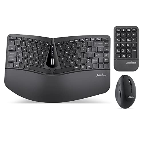 Perixx PERIDUO-606A, 3-i-1 trådlöst kompakt ergonomiskt tangentbord med vertikal mus och numerisk knappsats – justerbart handstöd – lutningshjul – membrannycklar med låg profil – US engelska