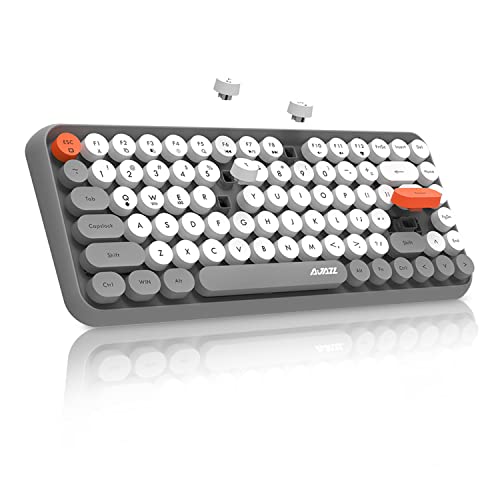 Bluetooth 5.0 trådlöst tangentbord, kompakt 84 tangenter lätt tangentbord, tyst lila kontorstangentbord, retrostil, matt textur, skrivmaskinsdesign, kompatibel med iPad, PC, bärbar dator, telefon (grå).