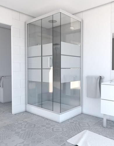 MARWELL Bricks Komplett dusch, färdig dusch, 110 x 80 x 225 cm, komplett set inkl. duschkar och armatur, hörndusch med främre ingång, duschkabin med högkvalitativa aluminiumprofiler