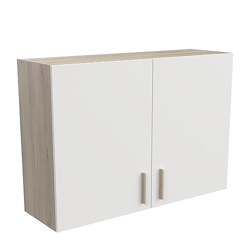 Demeyere Modulärt köksskåp med 2 dörrar - komplett kök "Oregano" - matt vit färg och ek - 100 x 30 x 70 cm