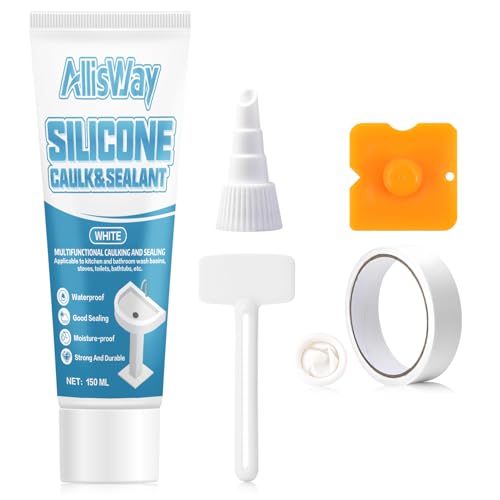 AllisWay Vit silikon, badrum silikon, vattentät tätningsmedel för kök och badrum, anti-kalorisilikon tätningsmedel, bra tätning, innehåller en komplett uppsättning verktyg, 150 ml