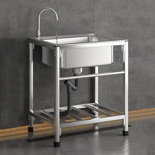 Diskho av rostfritt stål, med kran, komplett diskho med underskåp och tvätthandfat för utomhus- och inomhusbruk, för tvättstuga, garage, kök och restaurang, 48 x 35 x 75 cm