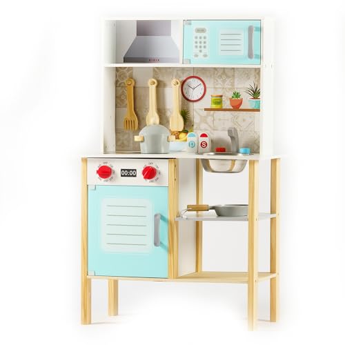 Maisonelle Nature Wood Kök Leksak Komplett med tillbehör med köksredskap, diskbänk, ugn. Storlek: 92 x 60 x 30 cm. Perfekt presentidé för alla små blivande kockar.