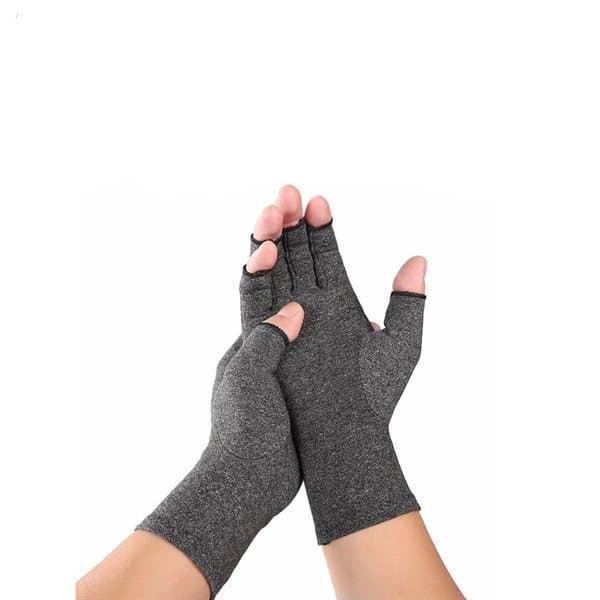 Arthros-handskar, fingerlösa handskar, reumatism, kompressionshandskar, artriti, spelhandskar, reumatisk smärtlindring, RSI, karpaltunnelsyndrom (M, grå + rosa)