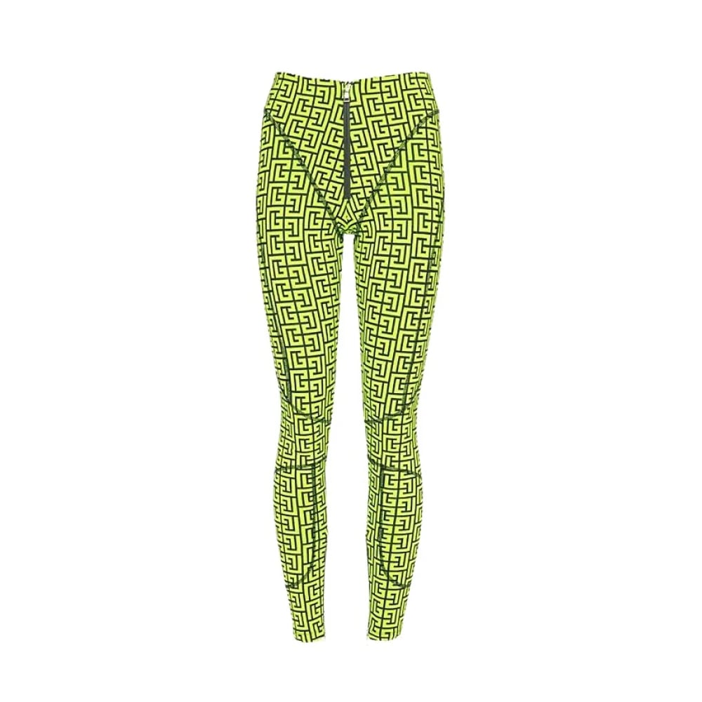 Balmain, Byxor , Dam, S, Bomull, Monogrammönstrad Kompressionsleggings med Dragkedja