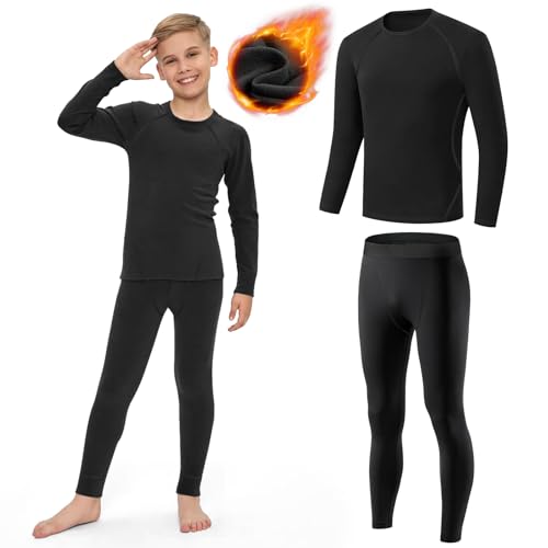 AUYAO Set med termiska baslager, pojkar, kompressionsleggings atletisk skjorta, ungdomar pojkar kompressionsunderkläder, atletiska barn långärmad topp och leggings