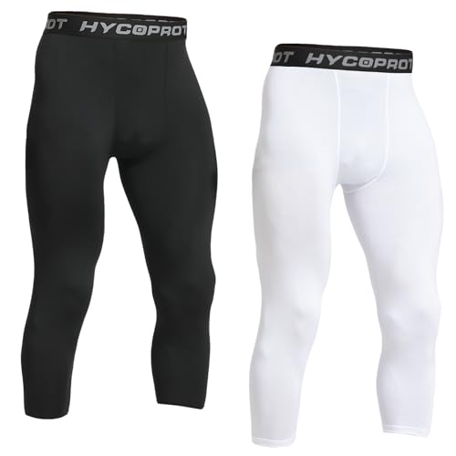 HYCOPROT Herr 3/4 kompressionsleggings atletiska tajta spetsar kompressionsbyxor coola torra baslager byxor för löpning träning sport yoga basket, Svart+vitt, M