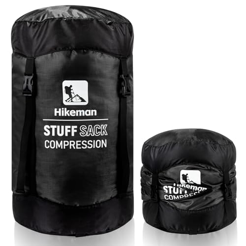 HIKEMAN Kompressionspåse för sovsäck – lätt kompressionspåse, vattentålig sovsäck saker säck för camping utomhus vandring backpacking resor (svart, M)