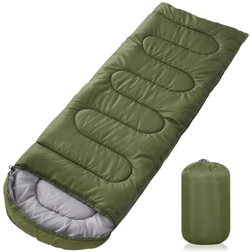 AQXONG Grön sovsäck, 220 x 85 cm vattentät sovsäck med kompressionspåse, 3 säsonger sovsäck 1,6 kg, bärbar sovsäck lämplig för inomhus- och utomhusbruk, bärbar och lätt