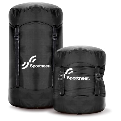 Sportneer Sovsäck, kompressionspåse, vattentålig och ultralätt sovsäck säck – platsbesparande utrustning för camping, vandring, ryggsäck inomhus och utomhus, S