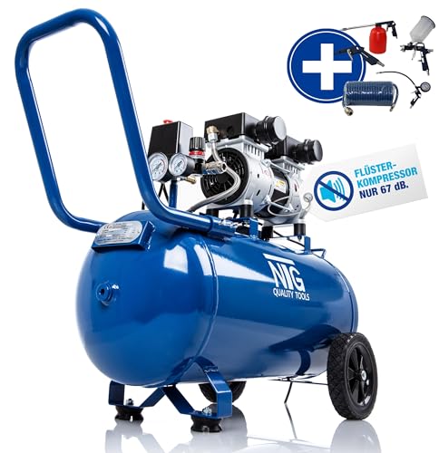 NTG Silent kompressor 9 bar | 50 l tank | 1 470 W stark effekt | oljefri | särskilt tyst och flexibel användning med manometer och tryckregulator 50 L tank (kompressor med startset, 50 liter tank)