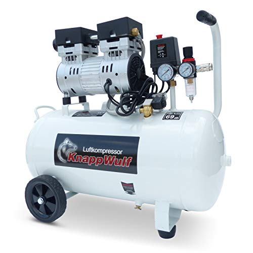 KnappWulf Viskande kompressor, luftkompressor, KW1050 med 50 l panna, 69 dB 750 watt, tyst med vattenseparator, tryckluftskompressor, 140 l/min