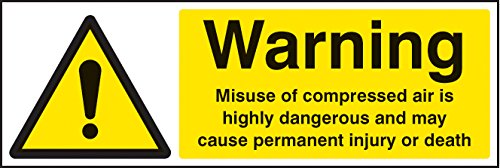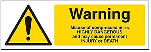 Caledonia skyltar 24441G Varning missbruk av komprimerad luft är mycket farlig skylt, självhäftande vinyl, 300 mm x 100 mm