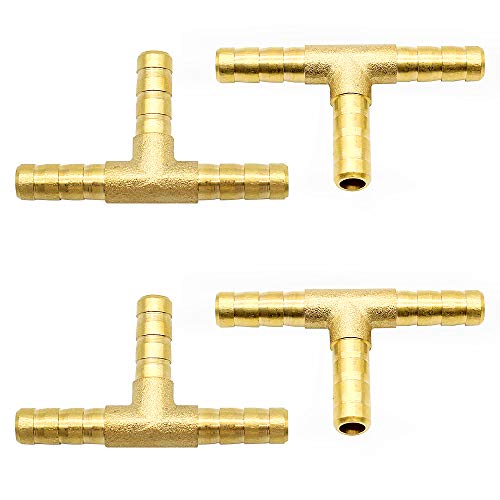 JUN-H Mässing 6 mm T-delad slangkontakt, 4 st, komprimerad luft, bränsleslangkontakt, hullingstyp, läcker inte lätt och separera