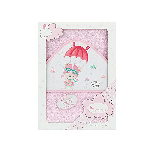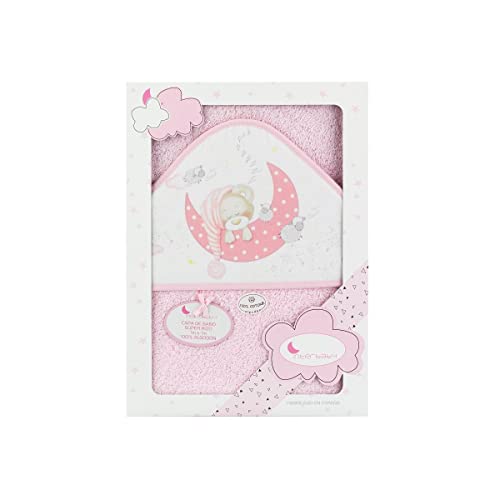 Interbaby 01225-12 badkappa kondens huva björn sovande vit/rosa