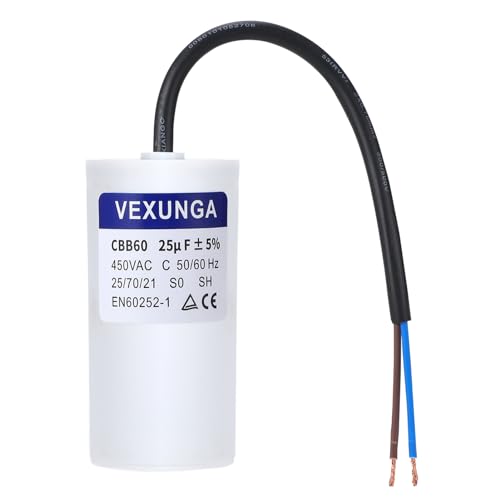 VEXUNGA Kondensator 25uF 450V startkondensator 25 µF AC motorkondensator CBB60 SH 25 MFD 450VAC kondensatorer 45 x 93 mm 50/60 Hz med kabel