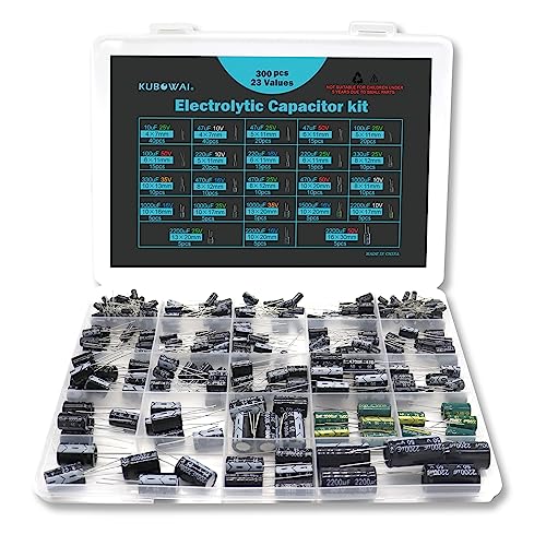 KUBOWAI 23 Värden 300 Stycken Kondensatorer, Kondensatorer Aluminiumcapacitorsats, Elektrolytisk Kondensatorsats, 10uF till 2200uF, 10 V 16 V 25 V 35 V 50 V