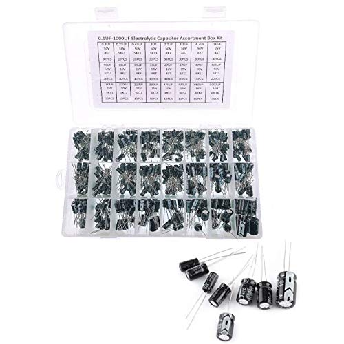 JZK 500 x elektrolytiska kondensatorer sortimentsats med förvaringsbox, 0,1 uF - 1000 uF 24 värde aluminium radiella ledningskondensatorer