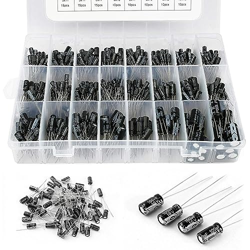 Swpeet 240 st 24 typer olika elektrolytiska kondensatorer räckvidd 0,1 uF-1 000 uF sortimentsats, 10 V/16 V/25 V/50 V aluminium radiella elektrolytiska kondensatorer för TV, LCD-skärm, radio, stereo, spel