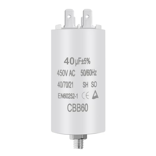 VEXUNGA Kondensator 40uF 450 V startkondensator 40 µF AC motorkondensator CBB60 SH 40 MFD 450VAC kondensatorer 50 x 92 mm 50/60 Hz med kabel