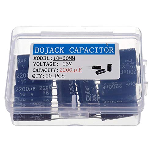 BOJACK 2200uF 16 V 10 x 20 mm kondensatorer 2200 MFD 16 volt 0,39 x 0,79 tum ±20 % aluminium elektrolytiska kondensatorer (förpackning med 10 st)