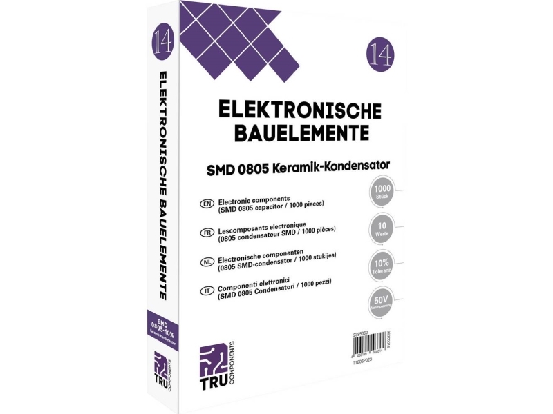 Tru Components T1806p023 Sortiment Keramiska Kondensatorer Smd 0805 50 V 10 % (L X B) 2,0 Mm X 1,2 Mm 1000 Stycken Bandklippning