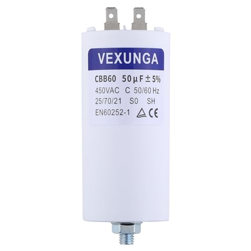 VEXUNGA Startkondensator 50uF 450V CBB60 motor kondensatorer avstängning 50 MFD 450 VAC 50x106MM M8-kontakt 50 µF 50/60Hz för poolpump tvättmaskin