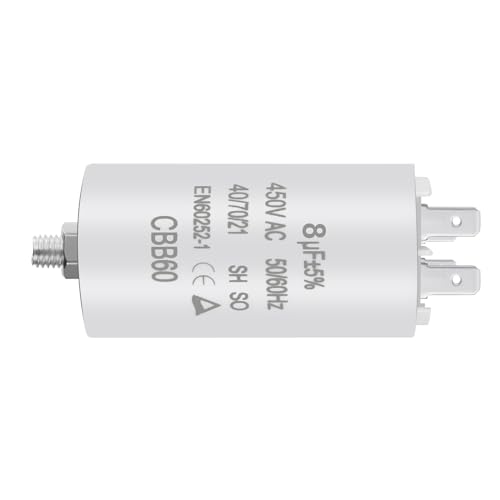 OFFCUP Motorkondensator CBB60 startkondensator 8μF 450V kondensator 8μF 450V CBB60 kondensatorer kontakt lämplig för elmotorer och poolpumpar, elmotor, 50/60 Hz