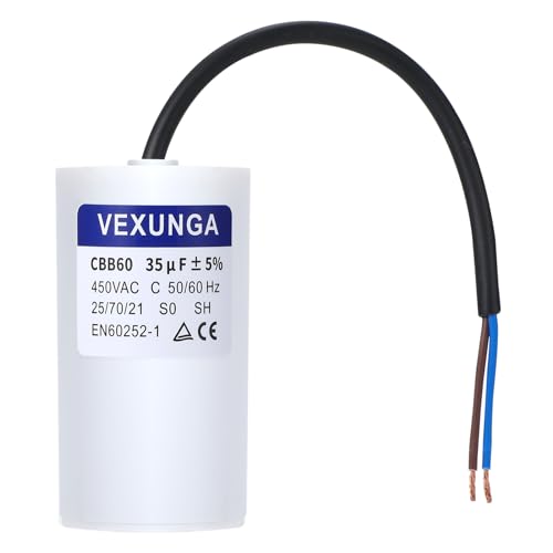 VEXUNGA Kondensator 35uF 450V startkondensator 35 µF AC motorkondensator CBB60 SH 35 MFD 450VAC kondensatorer 50 x 92 mm 50/60 Hz med kabel