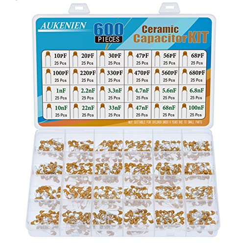 AUKENIEN 24 värde 600 stycken keramiska kondensatorer set kondensatorer sortiment från 10pF till 100nF keramisk kondensator kapacitor kit