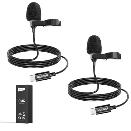 NEEWER 2 st mini Lavalier-mikrofon USB C kompatibel med iPhone 16 15 Pro Max Android Phone Tablet PC, rundstrålande kondensatormikrofon med 2 m/6,6 fot kabel