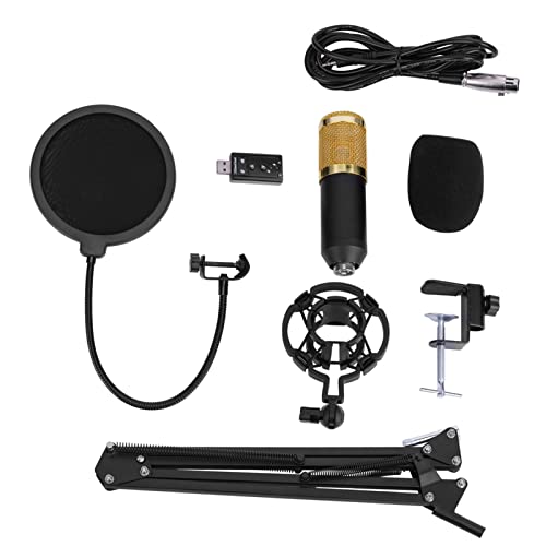 AYNEFY Kondensatormikrofon, BM800 professionell kardioid studio kondensatormikrofon armstativ dubbelskikt popfilter skumlock kit skivtillbehör för inspelning i rostfritt stål plastmaterial
