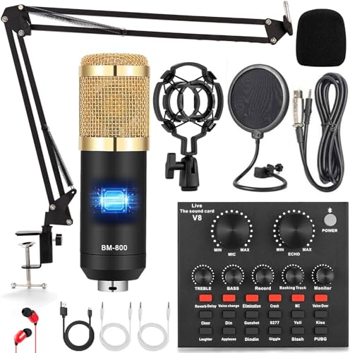 V8-ljudkort med kondensatormikrofon, studioinspelningssatser BM800 kondensatormikrofon justerbart stativ för ljudkort live ljudmixning bärbar stu inspelningskonsol