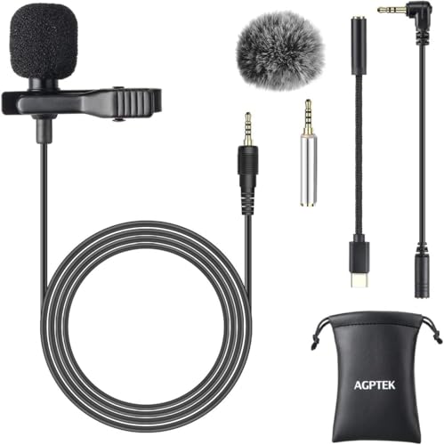 Agptek Mygga. Mikrofon med klämma för kavajslag, rundupptagande kondensatormikrofon med vindmuff typ C 3,5 mm med uttag för telefon, PC, laptop, DSLR-kamera för inspelningsintervju, podcast och röstdiktering
