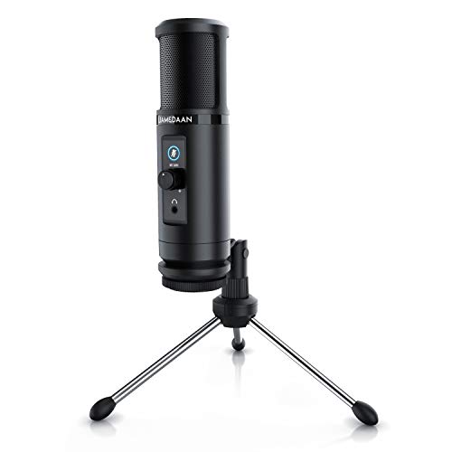 USB Podcast kondensatormikrofon – PC-mikrofon med monitorfunktion – 192 kHz – mikrofonstativ – 20 Hz till 20 kHz – roterande regulator mikrokontroll – monitor realtidskontroll, 7223045658722, svart