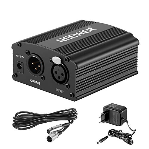 NEEWER 1 kanal 48 V fantommatning med adapter, bonus XLR 3-stifts mikrofonkabel för varje kondensatormikrofon musikinspelningsenhet (8 fot)