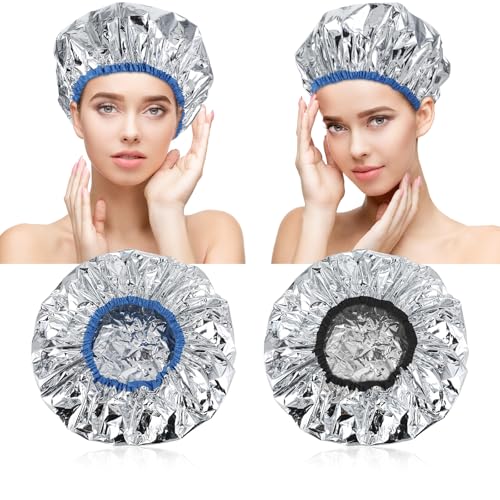 cobee 2 st värmelock för djup konditionering, förtjockad aluminium duschmössa ånglock, återanvändbara konditioneringsbearbetningslock för hår för användning i hem och salong (2 st)
